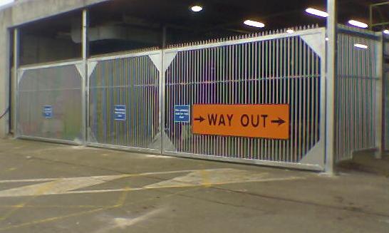 Galvanized steel security gates.