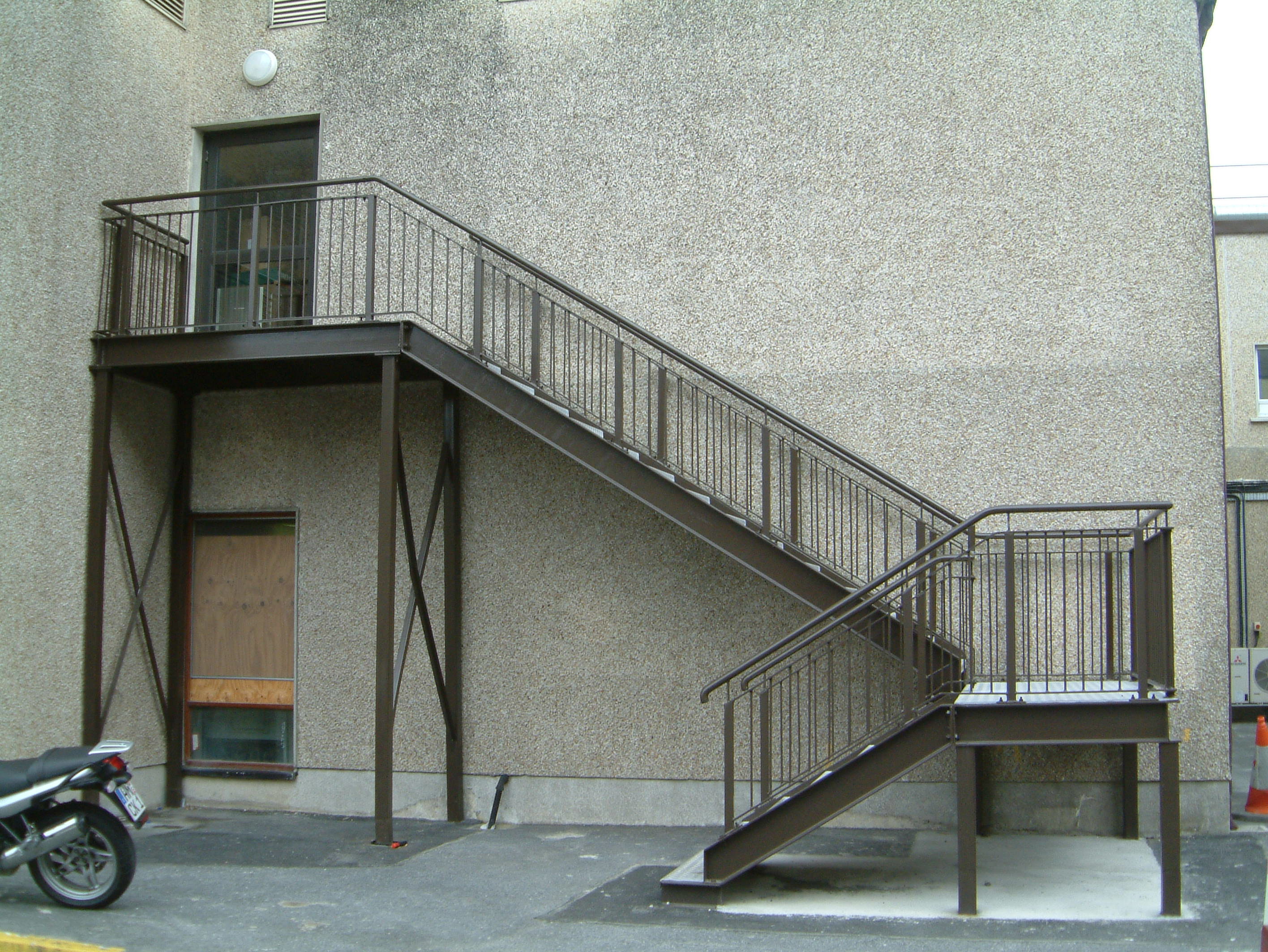 One and two storey galvanised powder-coated fire escapes
