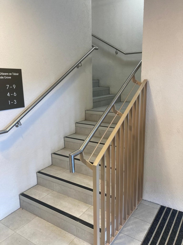 Extensive metalwork package at a residential development adjacent to Dublin’s Phoenix Park which included Stair Balustrades, 40 Balconies, powder coated aluminium Ceiling Panels & Glass Balustrades.